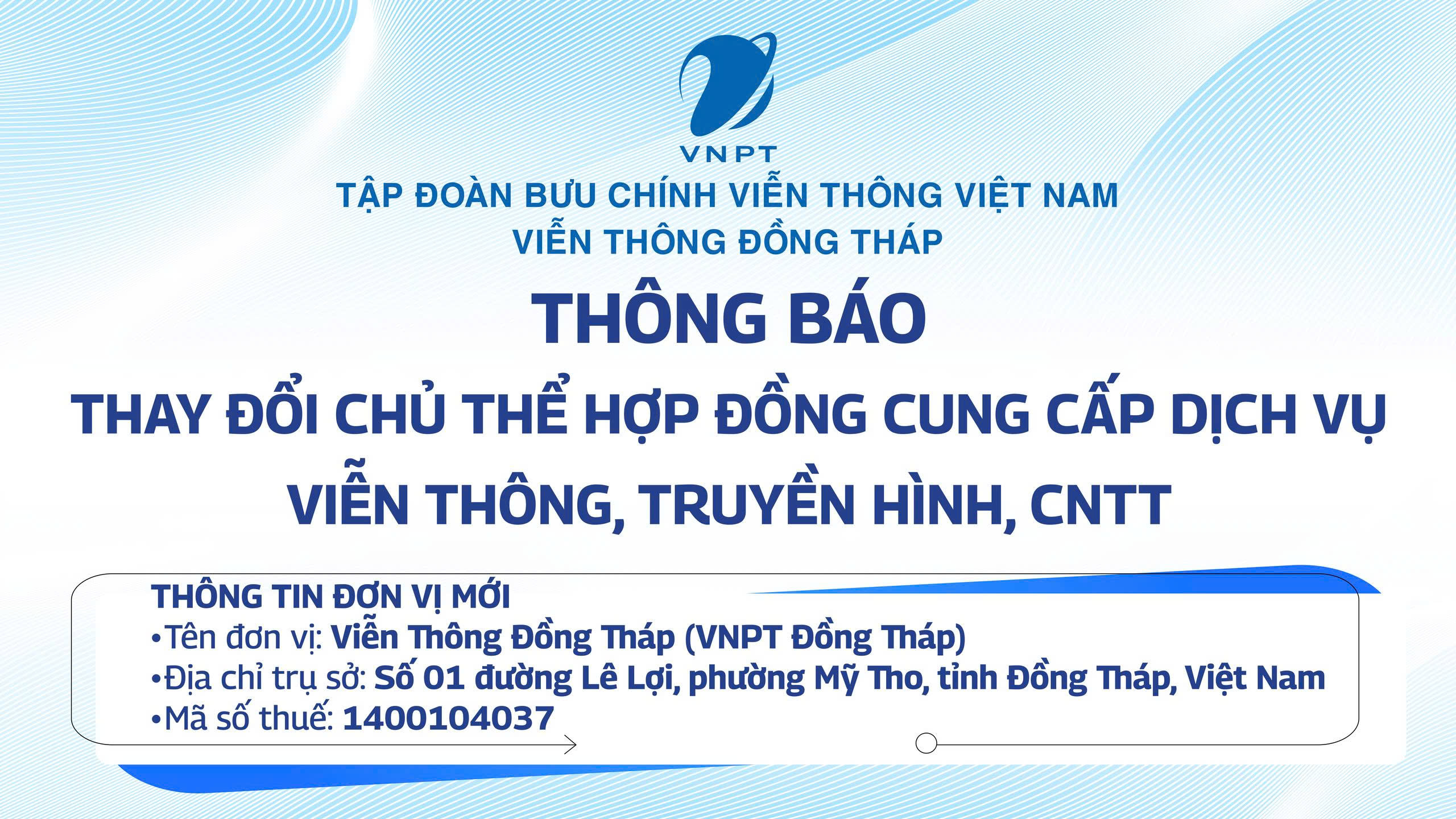 THÔNG BÁO THAY ĐỔI CHỦ THỂ HỢP ĐỒNG CUNG CẤP DỊCH VỤ VIỄN THÔNG, TRUYỀN HÌNH, CNTT 10/11/2025 8:42:26 PM
